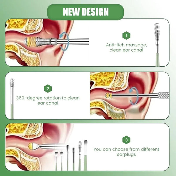 Ce kit professionnel est conçu pour un nettoyage efficace , doux et sans danger 🚫❌ pour le tympan . Grâce à ses 6 outils en acier inoxydable médical 🛠️, il vous assure une hygiène parfaite au quotidien et une oreille toujours propre et saine .